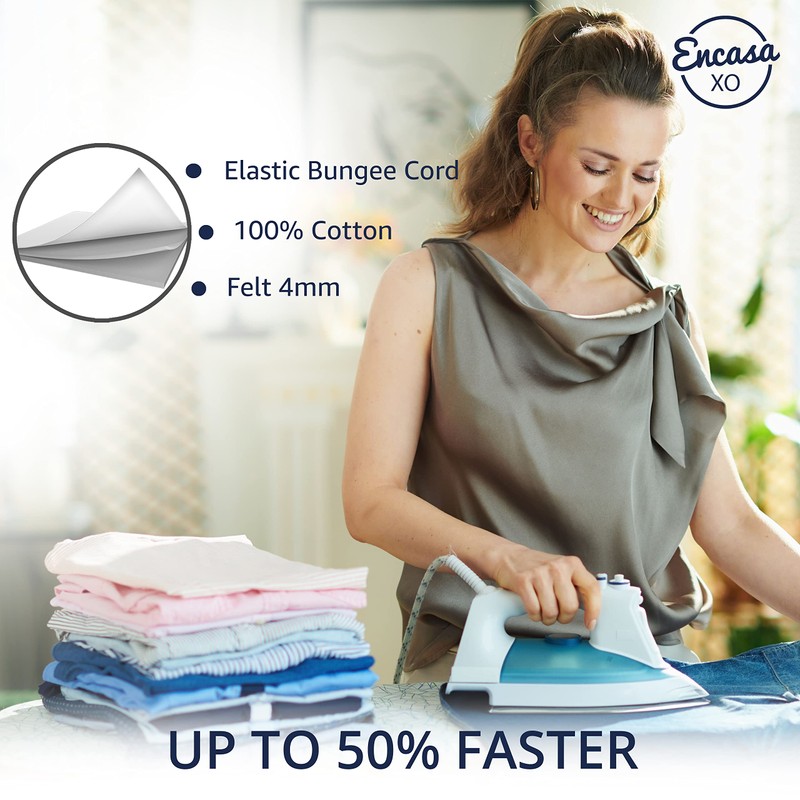 Las fundas para tablas de planchar de Encasa Homes Replacement 'Luxury Line' están hechas con ricos estampados de algodón y cubiertas de color sólido, que mejoran la apariencia de cualquier habitación en la que se encuentren. Las telas de alta calidad y la almohadilla especial gruesa y suave dan una gran experiencia de planchado, además de reducir el tiempo de planchado y ahorrar electricidad. Las fundas son elásticas en todas sus partes con un fuerte cordón elástico para que se ajusten bien alrededor de la tabla. Hemos utilizado materiales de alta resistencia que aseguran que nuestros productos tengan una larga vida útil.