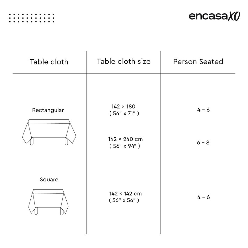 • PERFECT SIZE: Our table cover is the perfect size for 4-6 seater - 142x180 cm (56"x70"), 6-8 seater - 142x240 cm (56"x94"), and square table cover for 4 seater - 142x142 cm (56"x56").