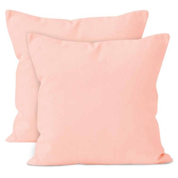 Encasa XO Cotton Throw Pillow Covers Set of 2 I 24x24 in (60x60 cm) - Powder Pink I No Insert I Plain Square Pillowcases I Machine Washable | Indoor Use Only