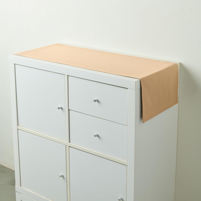Encasa XO Table Runner 13x72 in Long | Cotton Canvas Fabric | Light Beige Solid Color | Machine Washable & Durable