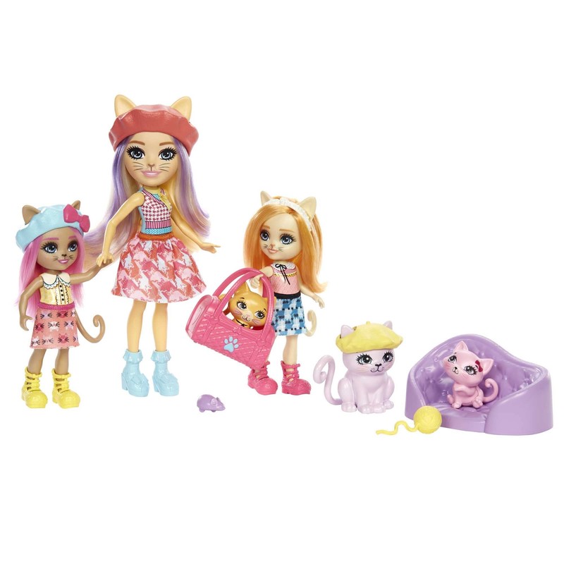 Enchantimals HHC11 - City Tails Siamese Cat Playset with Cat Girl Carmel Cat Doll, 2 Little Sisters, 3 Cat Figures, Includes Accessories, Toy for Children Ages 4 and Up