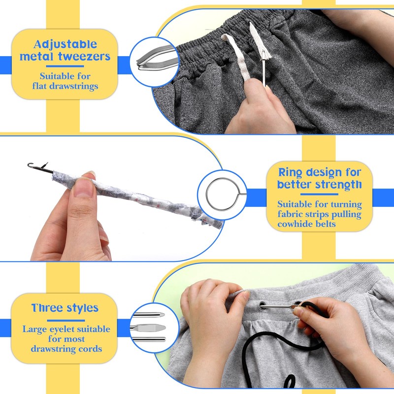 - Easy to use: You only need to thread the rope into the threader tool according to the thickness of the rope, and then thread the threader into the clothes until the rope is fully threaded. No effort is required to adjust and the drawstring can be fixed quickly