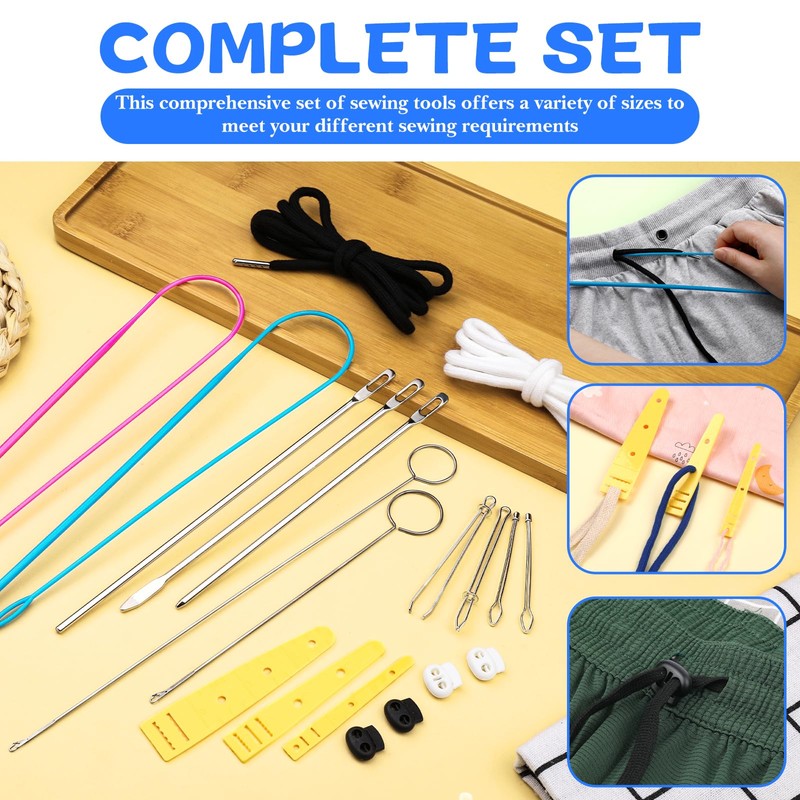 ENCHOL 20 Pcs Drawstring Threader Tool Set with Bodkin, Loop Turner Sewing Tool, Drawstring Cord, Elastic Threader and Cord Locks for Pants Hoodies Sweatpants Jackets Shoes