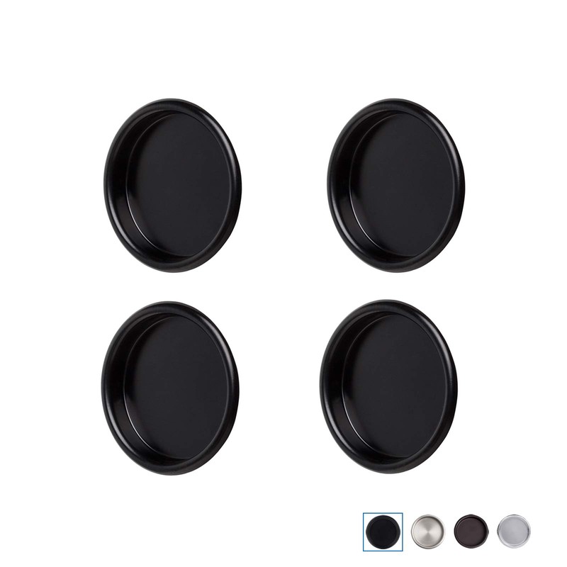 Enconker 4 Pack Closet Door Finger Pull 2-1/8”, Black Sliding Barn Door Hardware Round Insert Bypass Closet Door Handle, Easy Snap-in Installation