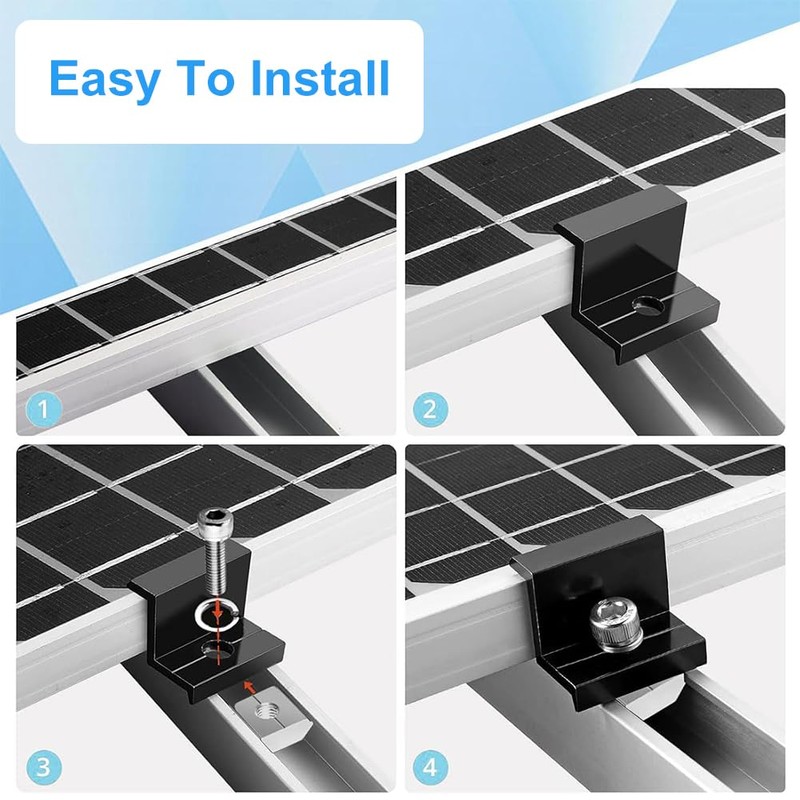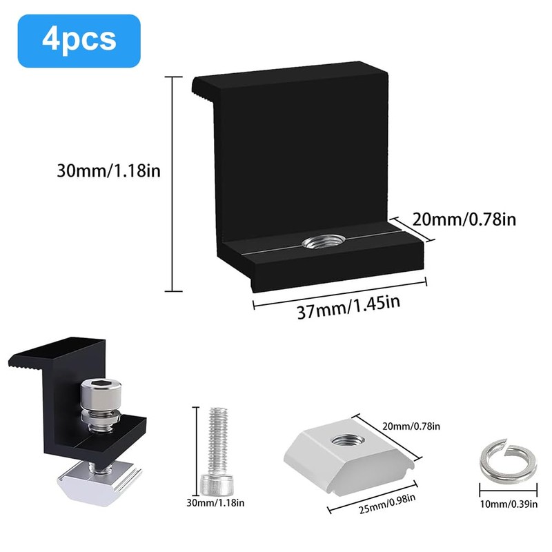- What you get: you will receive 4 pieces solar panel holder end clamp 30 mm for solar panel mounting with mounting nuts and screws. The number of holders solar panel for your daily use and your backup requirements and offers you great comfort.