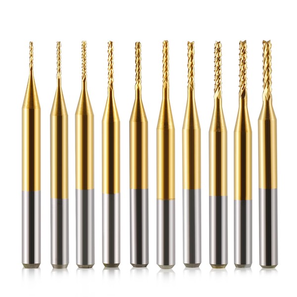 - 【Cost-Effective PCB Endmill Kit 】Titanium Coat CNC Router Bits, 10 different sizes to meet your needs: 0.6mm,0.7mm,0.8mm,0.9mm,1.0mm,1.1mm,1.2mm,1.3mm,1.4mm,1.5mm