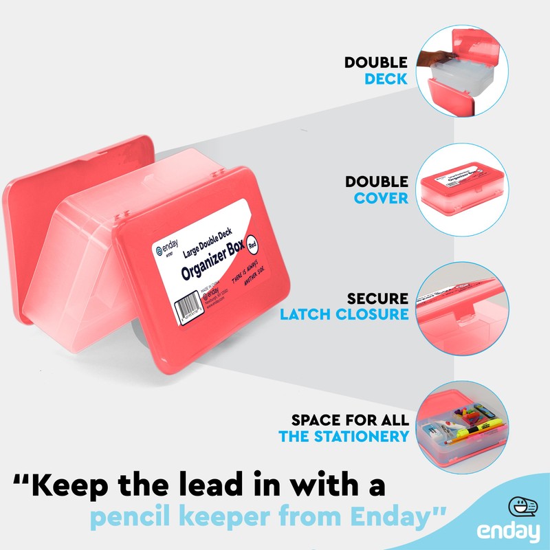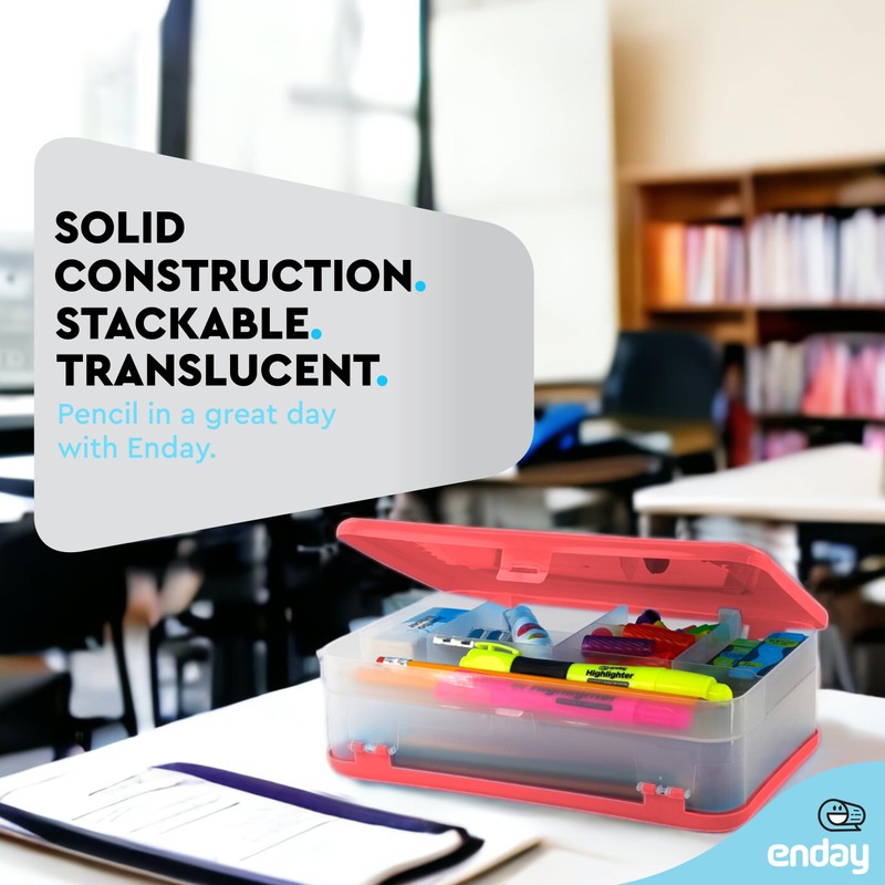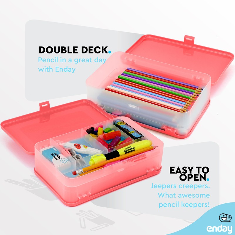 Enday Pencil Box Red, Large Capacity Plastic Double Deck Box with 12 Compartments, Plastic Pencil Box with Snap-Tight Lid, Hard Pencil Case Storage Organizer Pencil Boxes