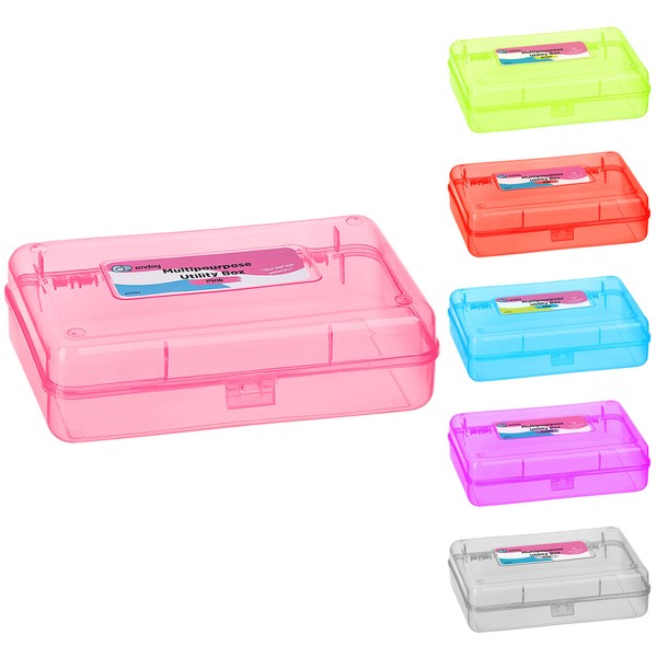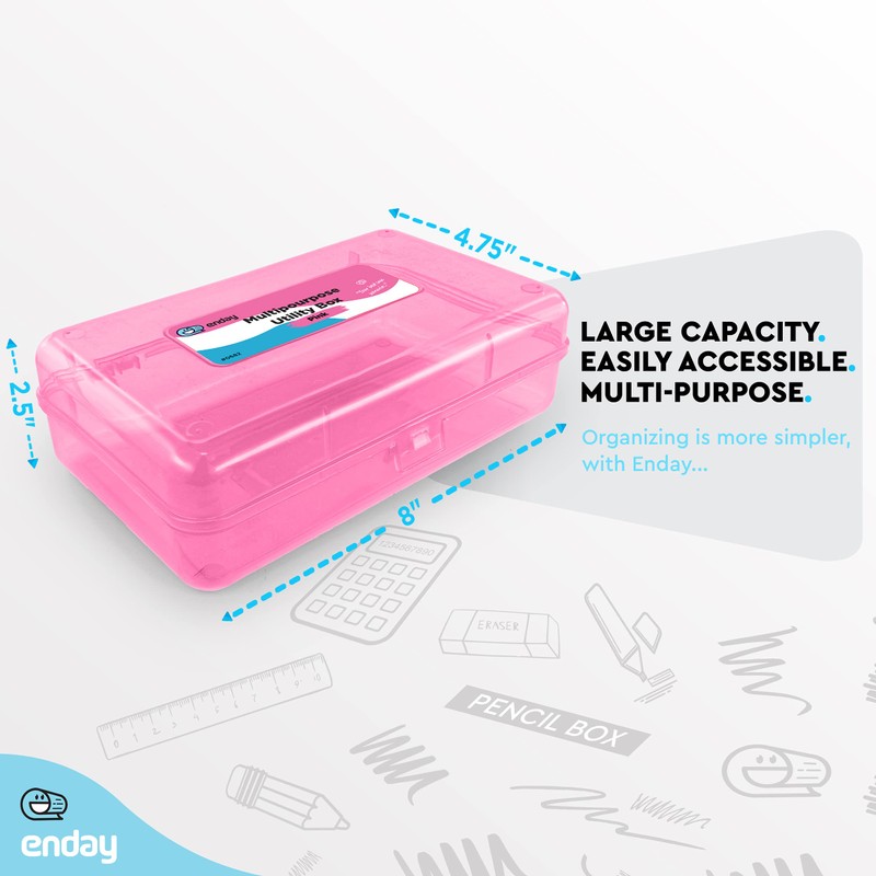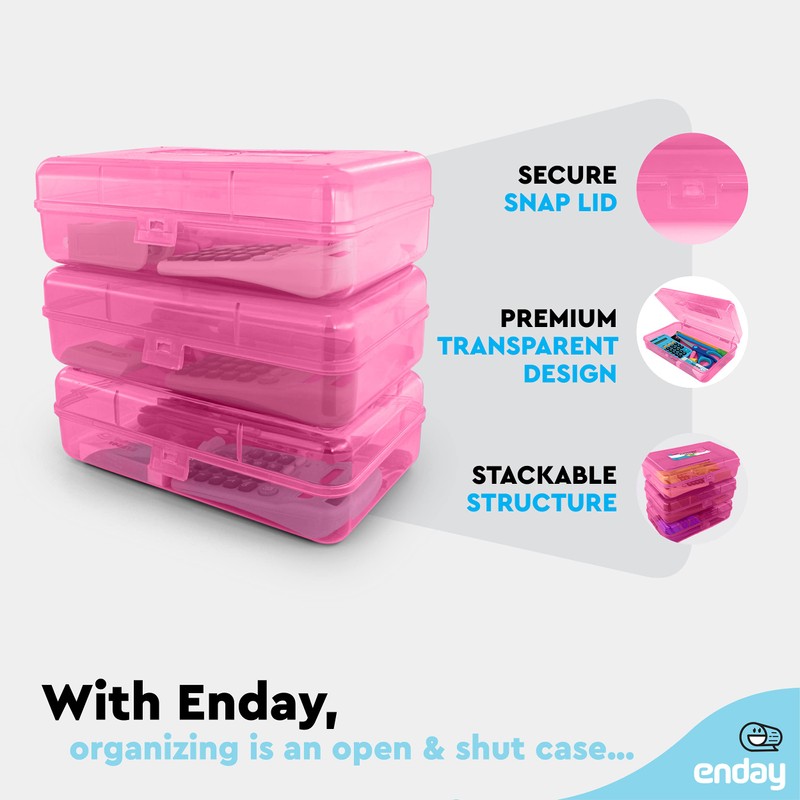 Enday Plastic Pencil Box Case Pink, Multipurpose Storage Organizer, Large Capacity School and Office Supplies with Snap Lid Utility Box, Also Available in Purple, Green, Red, Blue, Grey, 1 Pc