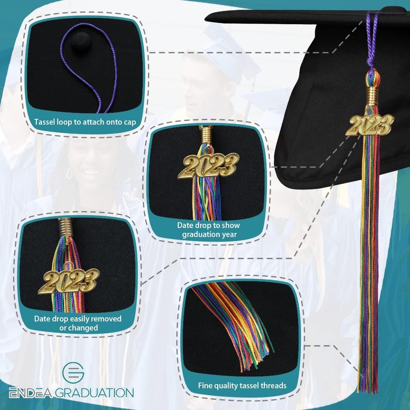 Endea Graduation Double Color Tassel with Gold Date Drop (Rainbow, 2023)