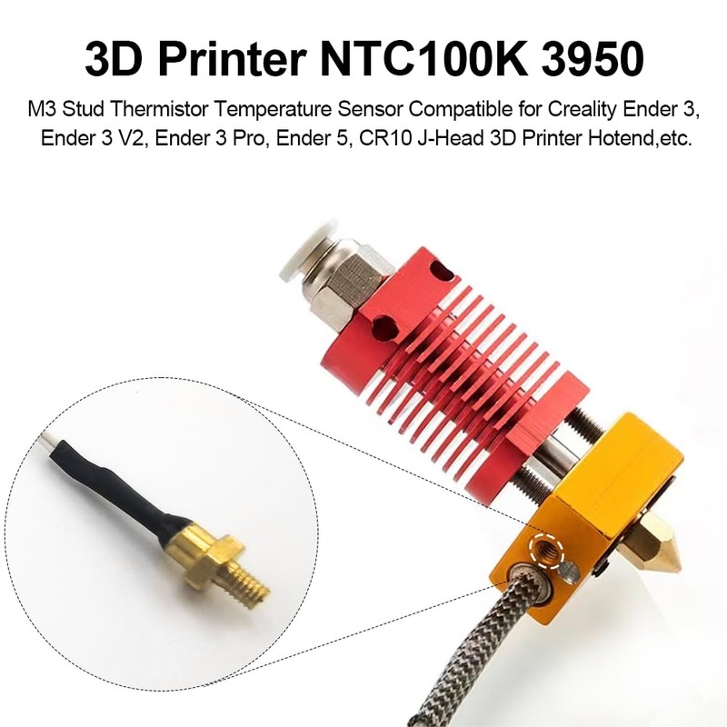 - Item Name: 1 Meter 3D Printer Ender 3 M3 Thermistor, M3 Stud Thermistor NTC 100K 3950 Thermistor Temperature Sensor.