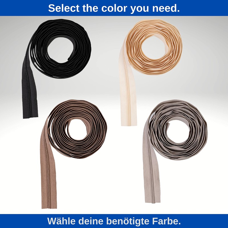 - Easy closure with 2.0 - 7.2 cm slide: the black zip roll can be divided into up to 15 zips.