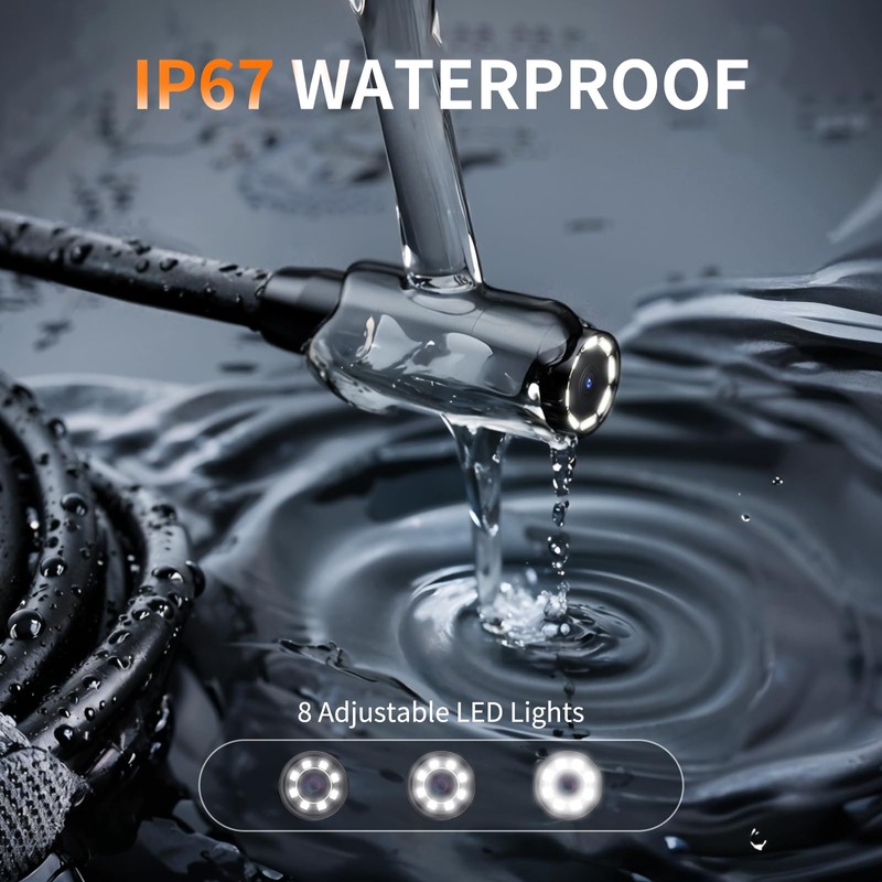 - IP67 and Semi-Rigid: With an IP67 waterproof probe and a 16.5FT semi-rigid cable, this sewer camera is built to handle like pipes, drains, and other wet or dusty areas. The flexible design ensures this snake camera with light can navigate through bends and curves.