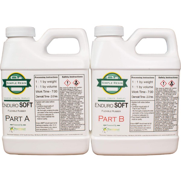 Enduro Soft - 2 Part Liquid Polyurethane Casting Rubber - Durable, Rubber Casting Resin - Soft Rubber Feel (2 lb kit (32 oz kit))