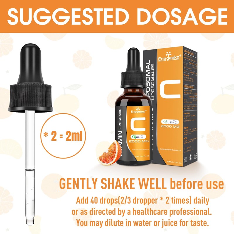 - SIMPLE DAILY ROUTINE - Liposomal Vitamin C is an easy addition to your health routine. Don't forget to shake slightly before use and then take 2ml per day. You can take it directly or mix it with any drinks or food as you like. Its wonderful taste will bring you a happy day.
