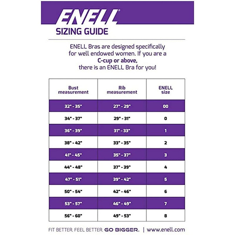 - FINDING YOUR PERFECT FIT - For the very best fit, please do not refer to your current bra size. Sports bras for large breasts require exact measurements to ensure a bounce-free fit. While wearing your everyday bra, take your actual measurements around the fullest part of your bust and around the rib cage directly under your breasts. Then refer to the ENELL size chart to see which ENELL size is your perfect fit. If in-between sizes, size down.