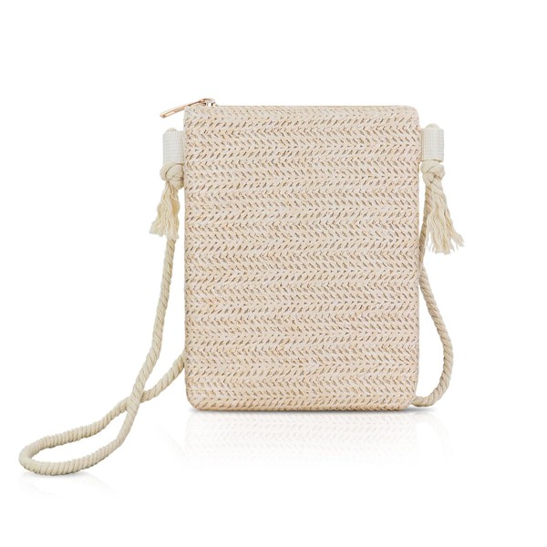 Energather Cell Phone Purse, Straw Crossbody Phone Purse Crossbody Cell Phone Purses for Women, Cell Phone Bag (beige)