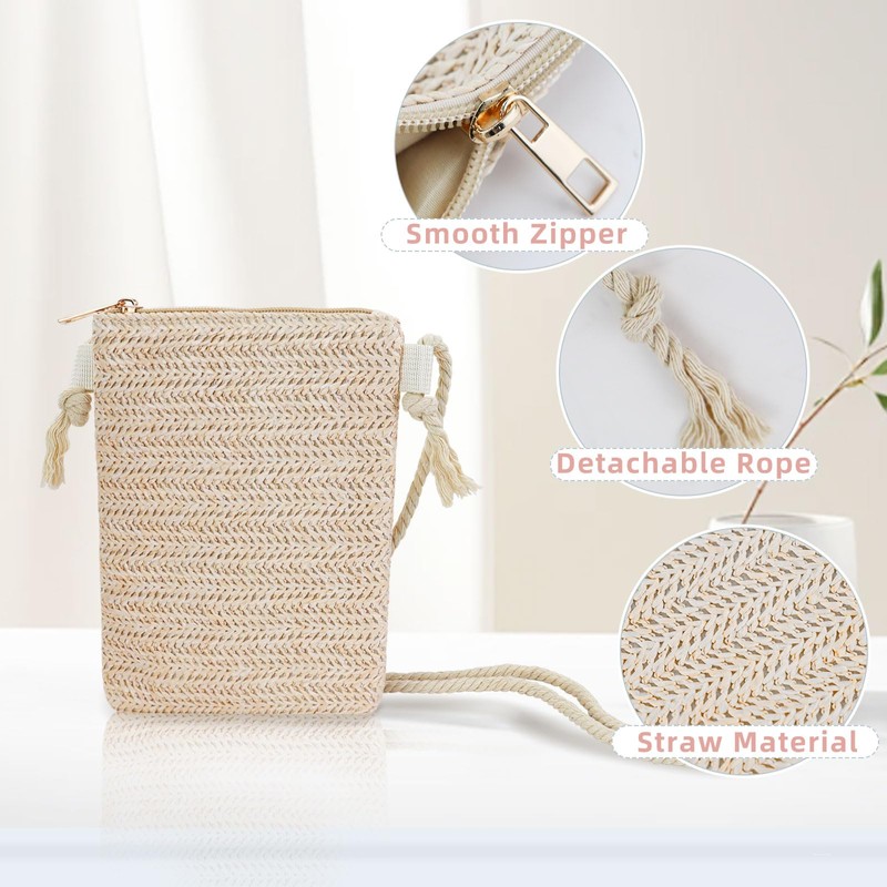 - Straw and Polyester: The exterior of the crossbody phone bag is woven from straw, stylish and simple. The interior is polyester, wear-resistant, and not easily faded
