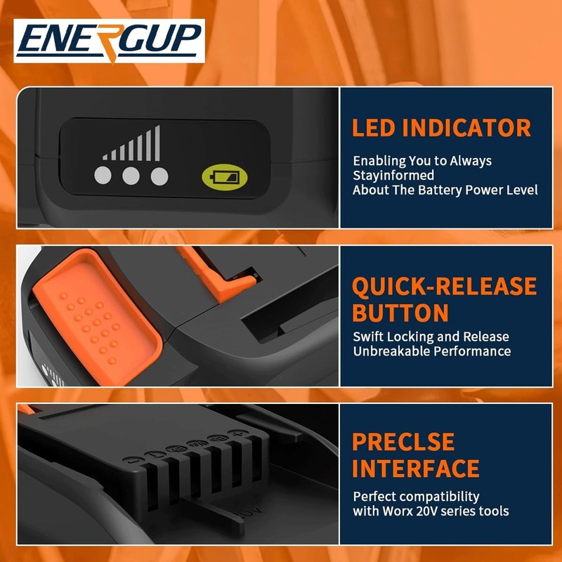 energup 2Pack 4.0Ah WA3525 Replace for Worx 20V Battery PowerShare for WA3520 WA3525 WA3575 WG890 WG891 for 20Volt Worx Batteries 20V