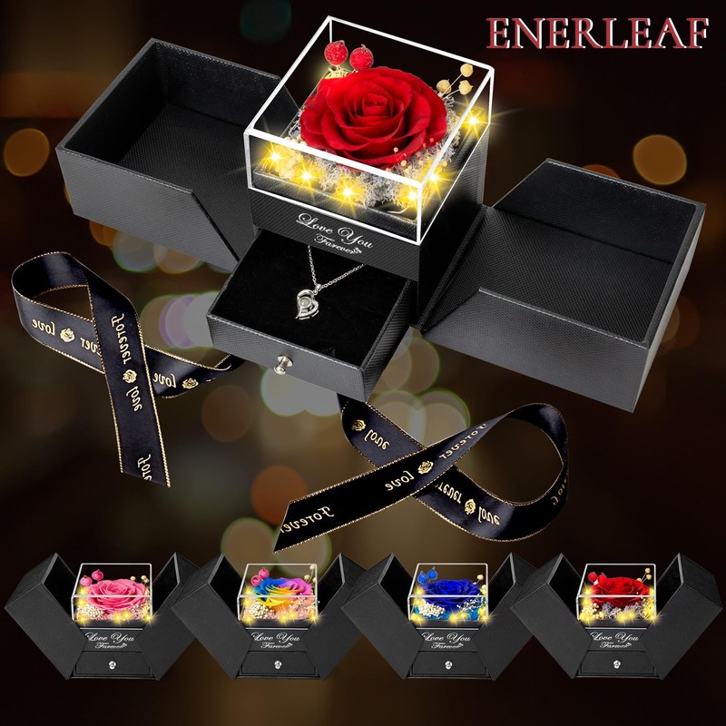 - ENERLEAF Preserved RoseENERLEAF's preserved rose is made of real nature fresh flowers, After a unique preservation method, it will stay for - years. No pollen. No need to water, no maintenance required. We also upgraded the rose jewelry box with lighting effects embedded in the center of the rose to make the gift look more romantic and ceremonial.
