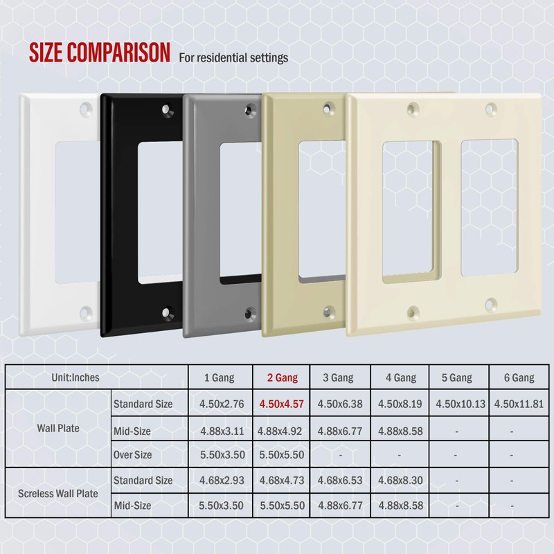 - Easy replacement of any wall plate of the same configuration. Dimensions: 4. 50" height x 4. 57" length