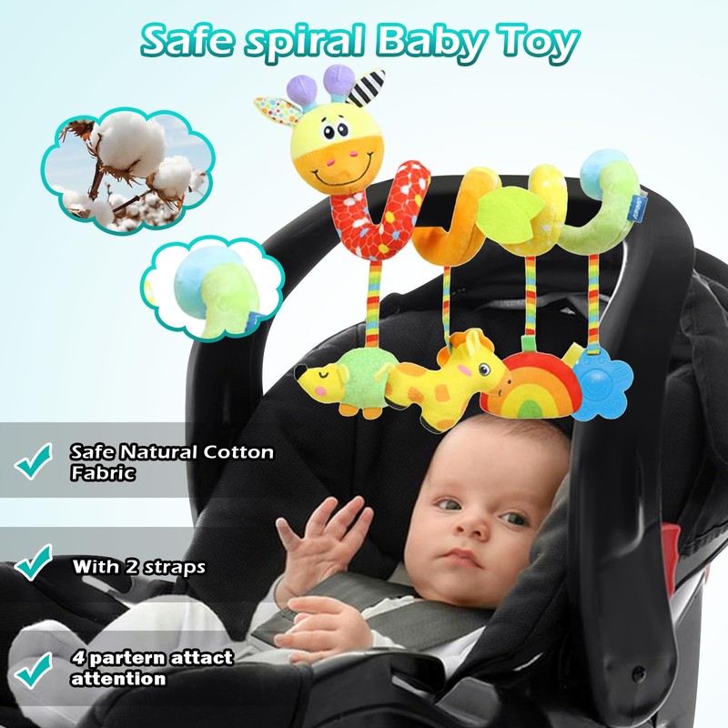 eners Pram Toy Baby Seat Cot Spiral Toy - Activity Spiral Hanging Toy Travel Activity Toy Baby Spiral Plush Toy for Toddlers from 0+ Months (Giraffe)