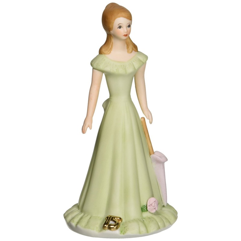 Enesco Growing Up Girls “Brunette Age 15” Porcelain Figurine, 7” Green