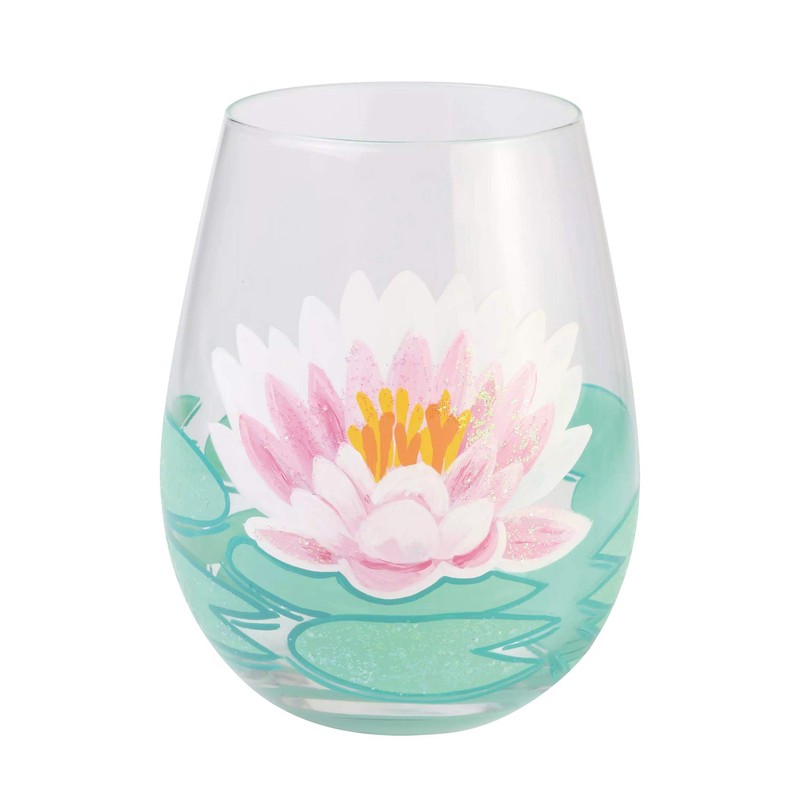 Enesco Designs by Lolita Lotus Hand-Painted Artisan Stemless Wine Glass, 20 O...