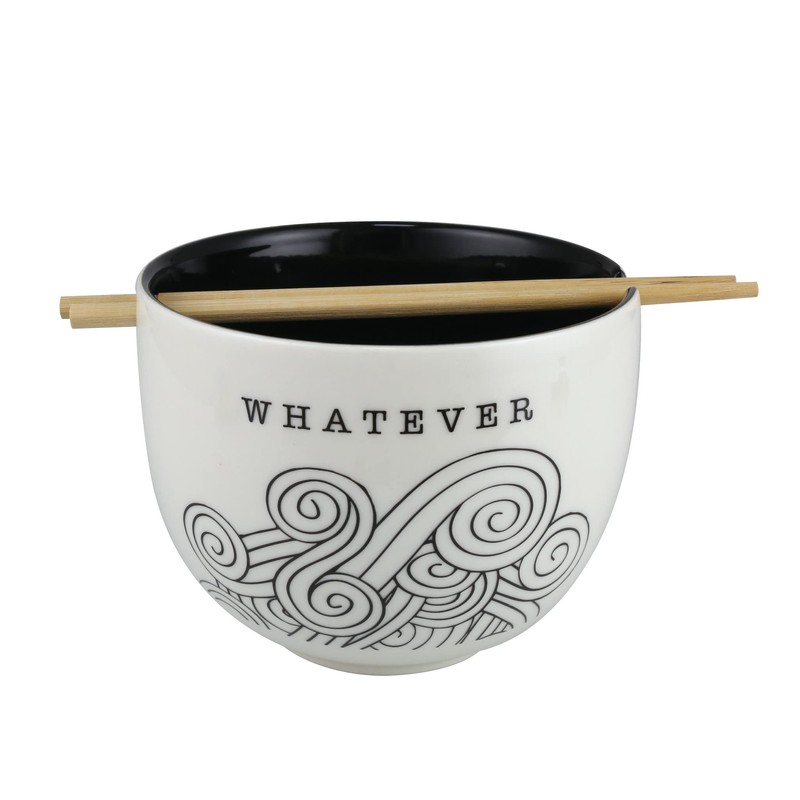Enesco Our Name is Mud Whatever Swirls Ramen Noodle Bowl and Chopsticks, 4.25 Inch, Black and White