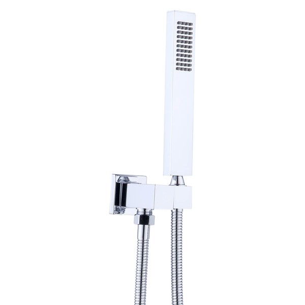 ENGA Square Solid Brass Hand Held Wand Shower Head with Wall Connector and Stainless Steel Hose Set, Chrome