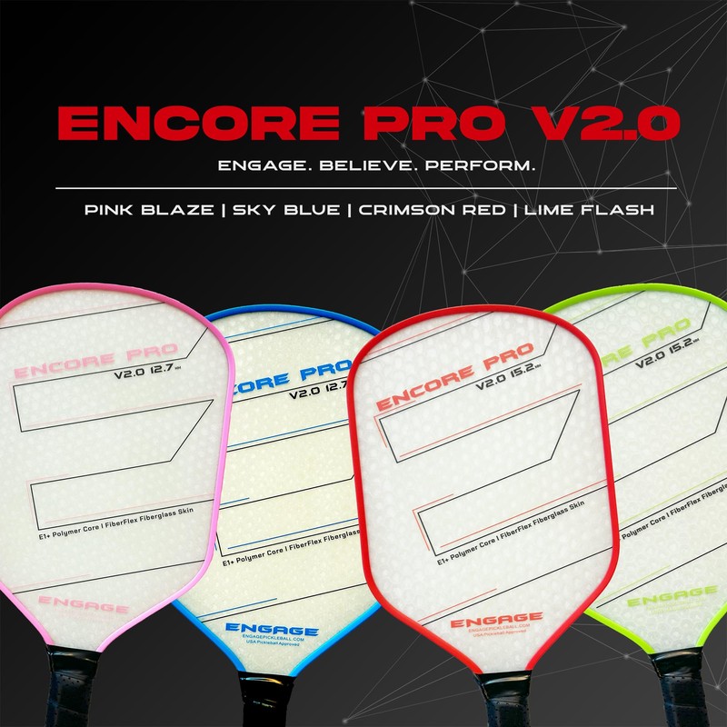 Engage Encore Pro V2.0 12.7mm Pickleball Paddle Playability with Power | Hybrid - Crimson Red (Lime Flash, 15.2 MM (Thick))