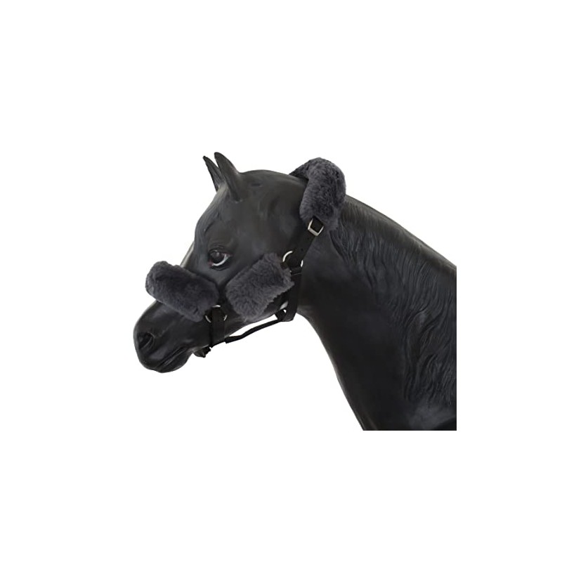 Engel transport set (hutch set) 4-piece including 1x neck protector, 1x nose protector, 2x jaw pieces: the halter set is made from 100% lambskin (genuine merino lambskin from Australia). The lambskin is particularly soft and dense wool. The wool height is approx. 30 mm. The length of the neck protector is approx. 32 cm. The nose protector is approx. 28 cm long. All 4 parts can be attached to the halter thanks to Velcro fastener. The lambskin protector prevents chafing and pressure points in the sensitive nose and neck area, as well as in the jaw area of the horse.