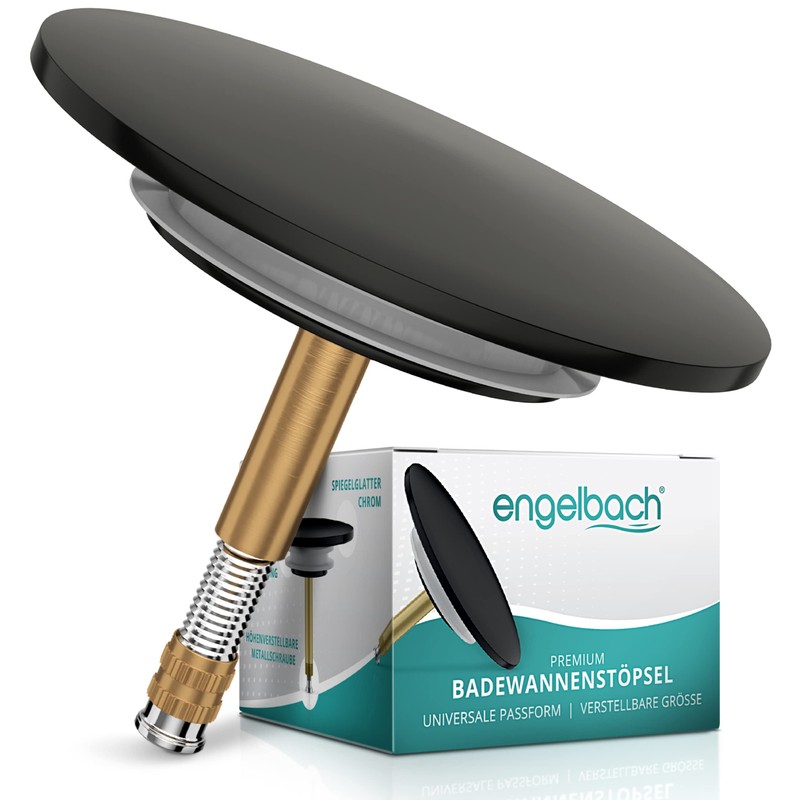 Engelbach® Bathtub Plug with Universal Fit - Plug Bathtub Rustproof with Double Seal - Bath Plug for Any Standard Bathtub in Matt Black