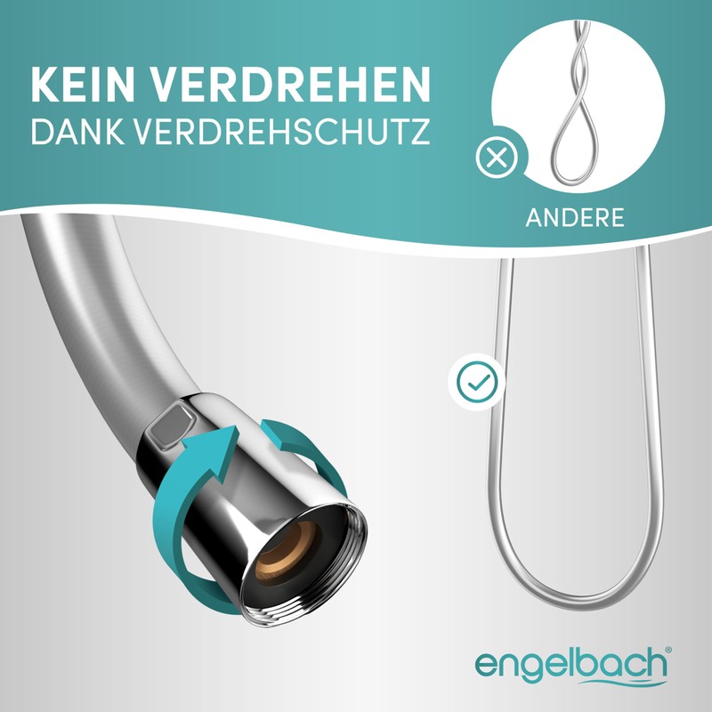 Engelbach Engelbach? Duschschlauch 2m mit doppeltem Verdrehschutz - Brauseschlauch aus Kunststoff - Flexibel & Knickfest - Universelles ? Anschlussma? - Made in Germany