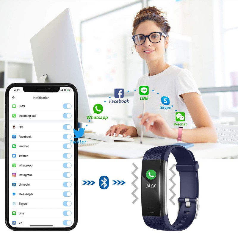 - 【Call & Message Notification】: You can get calls, SMS messages, and SNS notifications directly on your wrist (including Facebook, Twitter, WhatsApp, and Instagram).