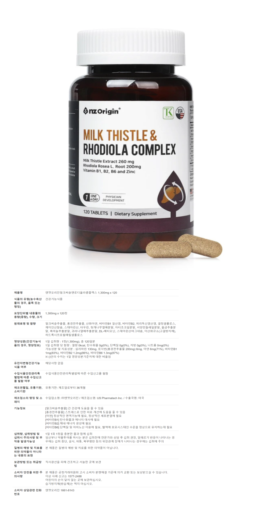 Enget Origin Milk Thistle & Rhodiola Complex 1 bottle (4 months supply) / 엔젯오리진 밀크씨슬 앤 로디올라 콤플렉스 1병 4개월분