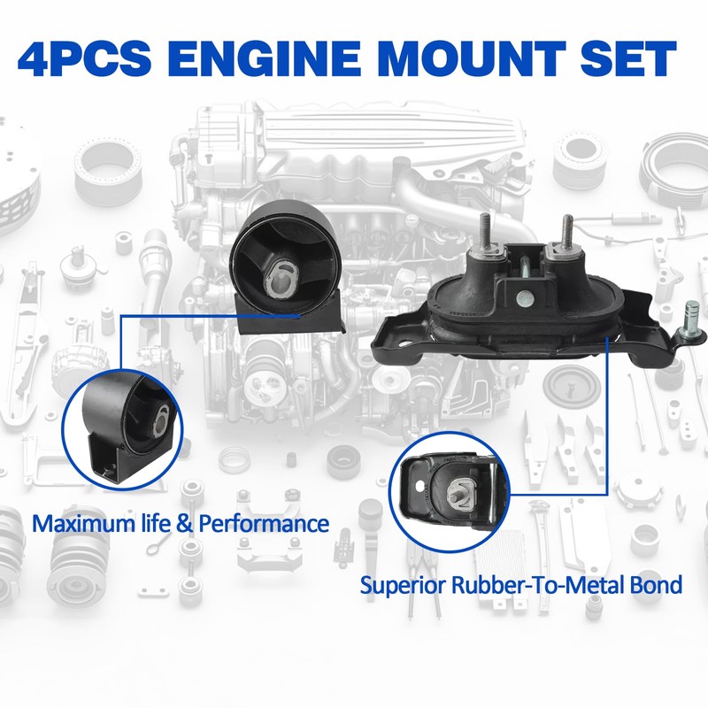 - Everyday Reliability: Crafted with premium-grade metals and state-of-the-art synthetic rubber, our Engine Mounts deliver unmatched reliability and performance. This perfect combination ensures that every mount is not just built to last, but designed to enhance every aspect of your driving experience