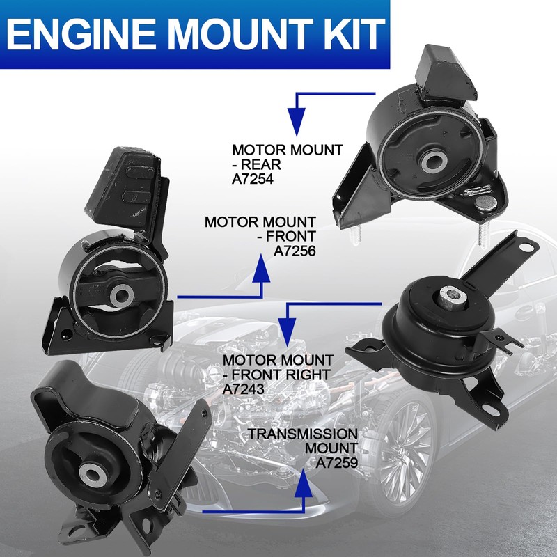 Engine Motor Mounts Set - Compatible with 1998-2002 Chevy Prizm 1.8L, 1998-2002 Toy OTA Corolla L4 1.8L Sedan Auto Trans, Replace# A7243 A7254 A7256 A7259, Set of 4