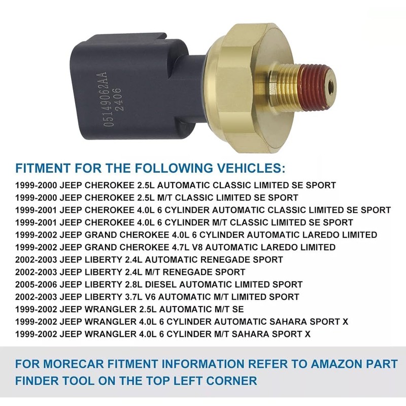 - High Quality Materials: 5149062AA oil pressure sensor switch is made of quality metal material, lightweight, anti-rust, colorfast, durable, no oil leakage with stable performance. The oil pressure switch sensor indicates if the oil pump and lubrication system are working properly, detects if the pump or relief valves are stuck open, senses if there is insufficient oil, accurately measure the oil pressure value to turn off the low oil pressure warning light to protect the engine.