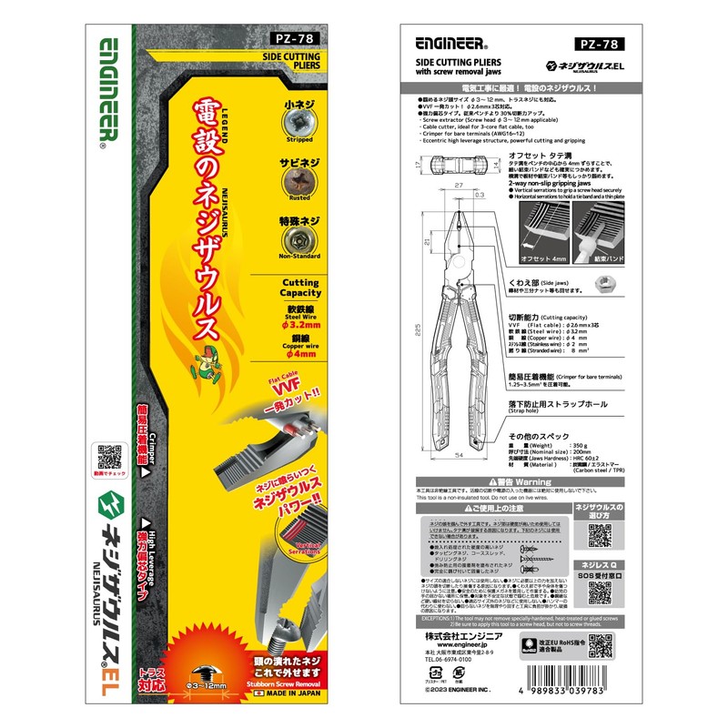 ENGINEER PZ-78 Engineer Screw Saurus EL Electrical Work Test Compatible with Simple Crimping Function, For Tanned Screws, Crushed Screws, Rusted Screws, For Φ0.1 - 0.37 inches (3 - 9.5 mm)