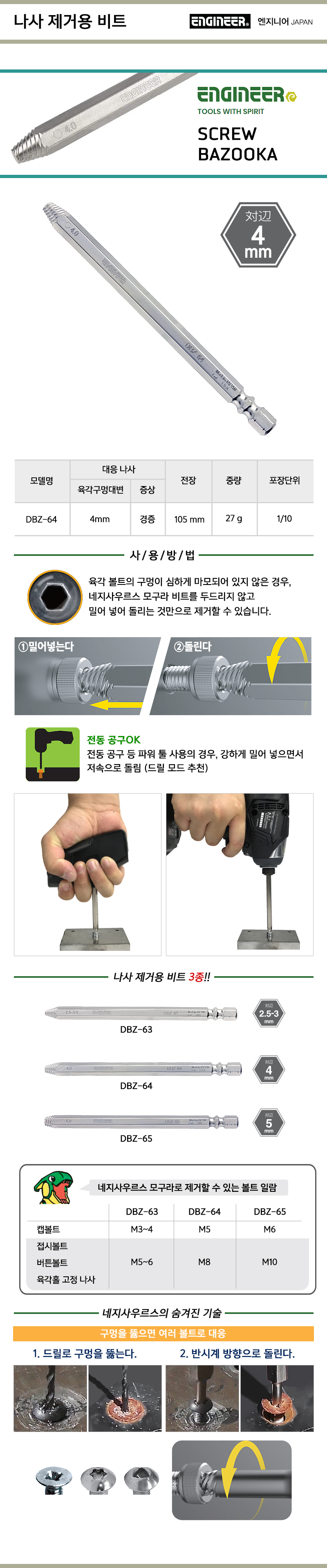 Engineer Screw Removal Bit DBZ-64 4mm ENGINEER