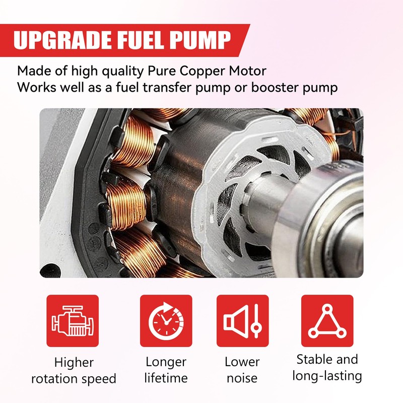 - Vibration-Reduced Operation: Copper-wound motor provides consistent 1.0-2.0A draw, preventing voltage drops in 12 volt fuel pump applications. Vibration-dampening construction minimizes noise during transfer operations. Rigorous quality control includes 24-hour endurance testing before shipment.