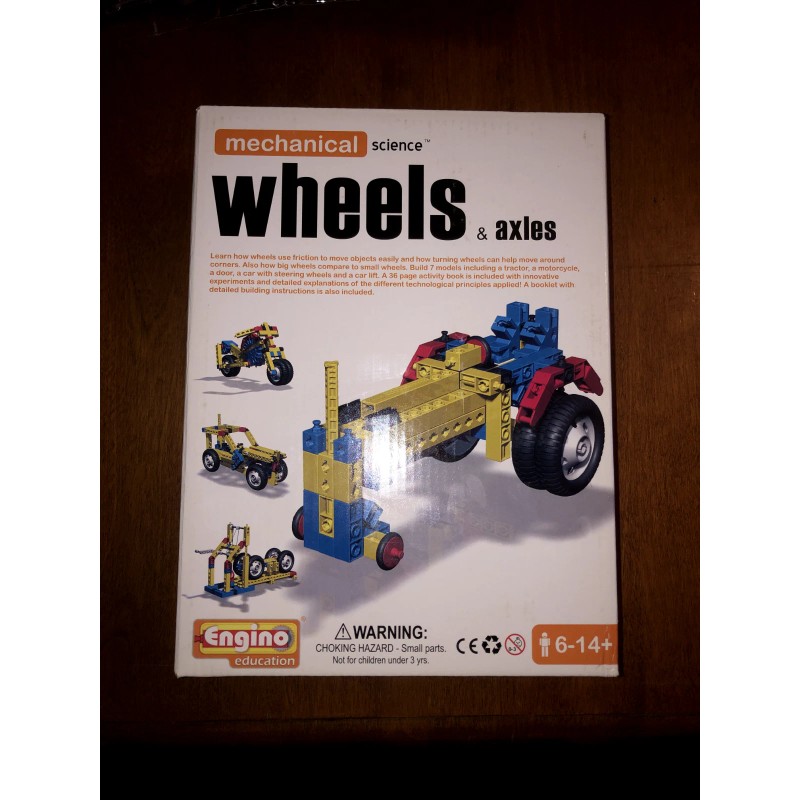 Engino Mechanical Science: Wheels. This Engino set introduces young engineers and physicists to how use friction to move objects easily and how turning wheels can help move things around corners. Compare large and small diameter wheels. Build 5 models including a tractor, a motorcycle, a door, a steerable car, and a car lift. A 40-page activity book is included with innovative experiments and detailed explanations of various technical and scientific principles and how they are applied. The Engino Toy System is perhaps the most advanced and versatile three-dimensional construction toy in the market today. It offers both children and adults unique opportunities for design and creation. The system is comprised of multi-faceted rods and connectors that share some unique geometrical features that allow connectivity on up to 6 sides simultaneously. In essence, the patent pending design transforms rods into connectors and allows dense or open construction. This allows engineers to build simple or complex models quickly with a smaller number of different components.