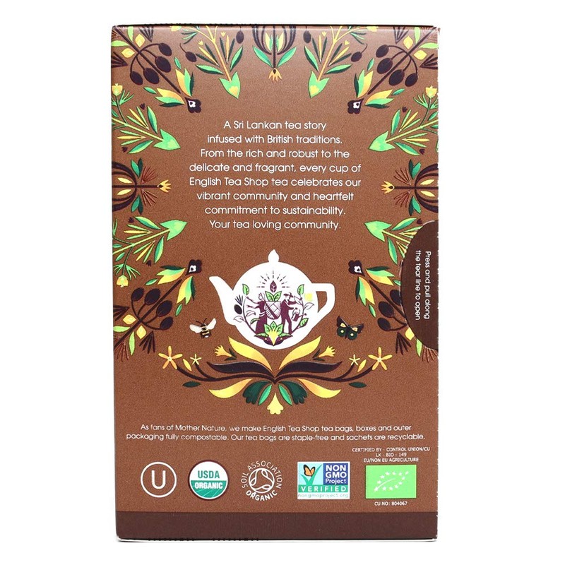 • As fans of Mother Nature, we make English Tea Shop tea bags, boxes and outer packaging fully compostable. Our tea bags are staple free and sachets are recyclable.