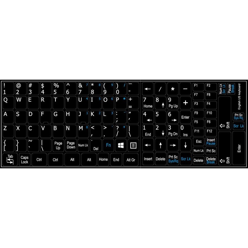 English US Non-Transparent Keyboard Labels Layout with Additional Keys Black Background