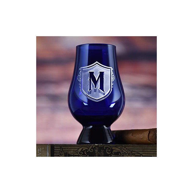 Engraved Blue Glencairn Whisky Glass With Crest (Single 1)