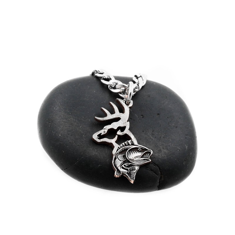 Engraved Buck and Bass Fish Necklace, Hunting Jewelry, Gifts For Him, Hunters Gift, Hand Cut Coin, By NameCoins