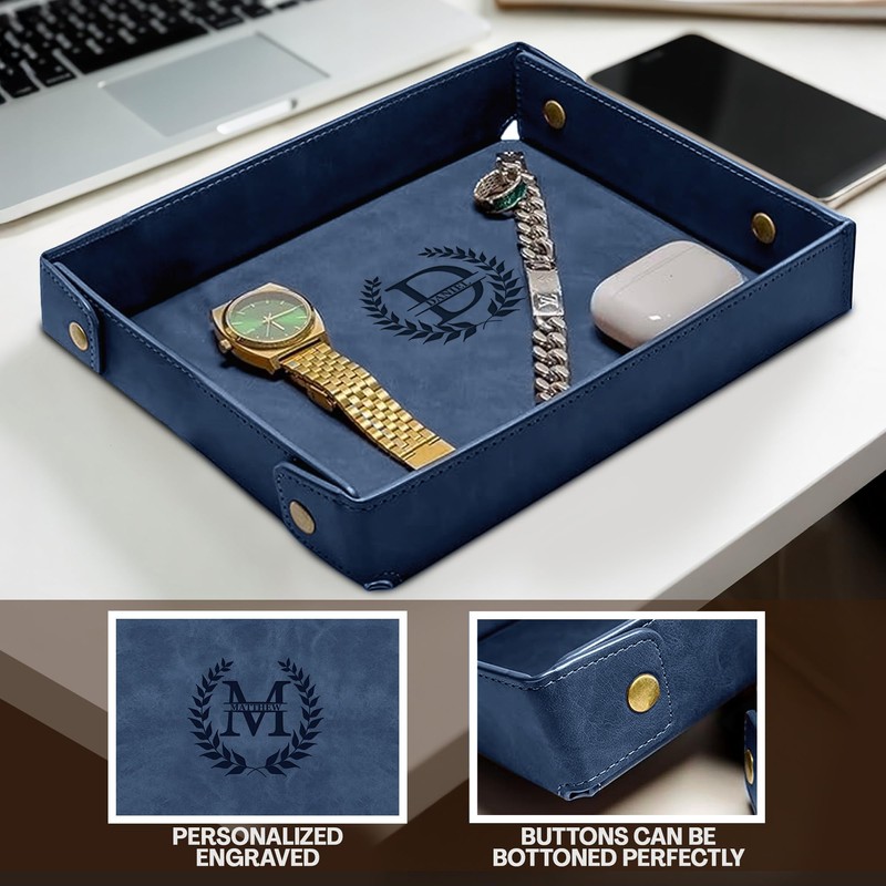 - Custom Engraving Leather Tray for Men: Personalize this valet tray with a custom engraved name, adding a thoughtful and lasting touch. Whether it’s a name, initials, or message, it transforms the tray into a special piece just for him or her.