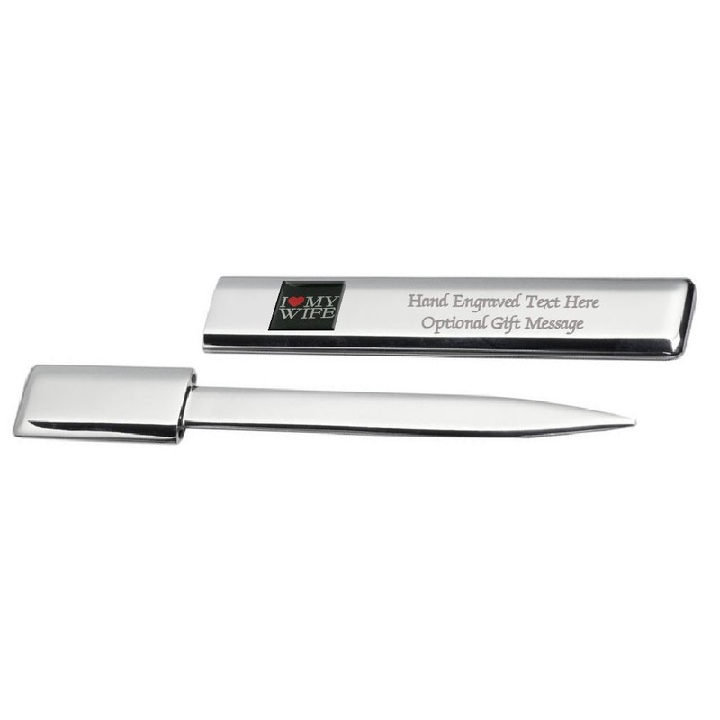 Engraved Post Letter Opener with German Text "Ich liebe meine Frau