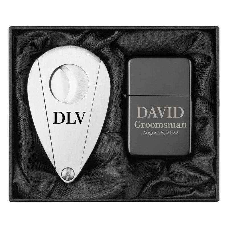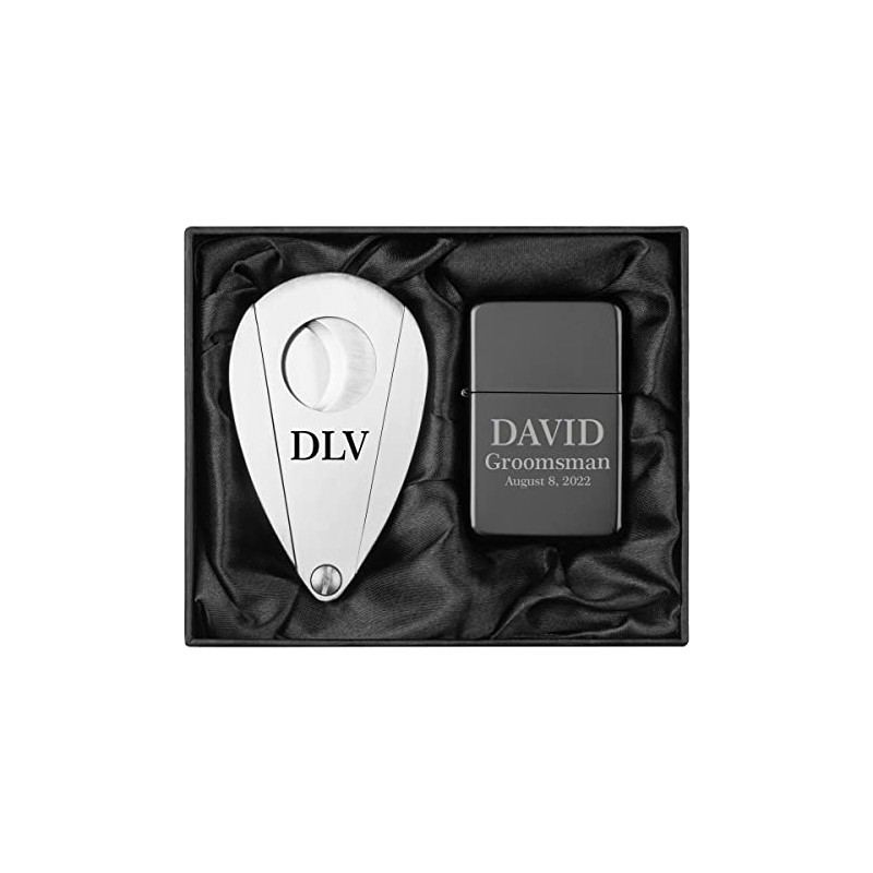 - Engraved Stainless Steel Cigar Cutter & Chrome Lighter Personalized Custom
