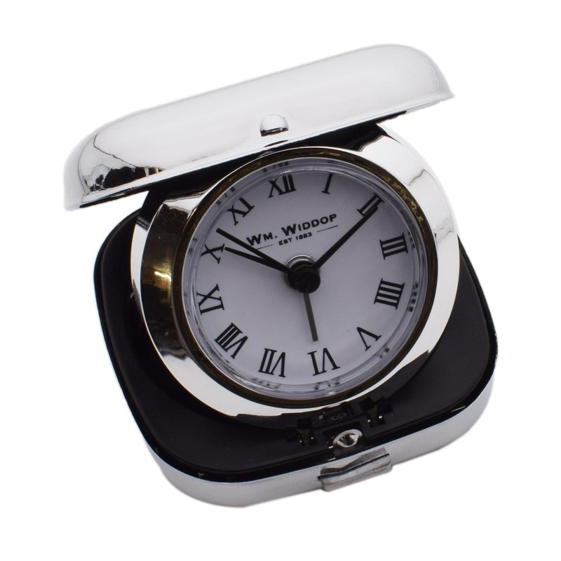 Engraved Travel Alarm Clock with Quartz Movement, Chrome Case